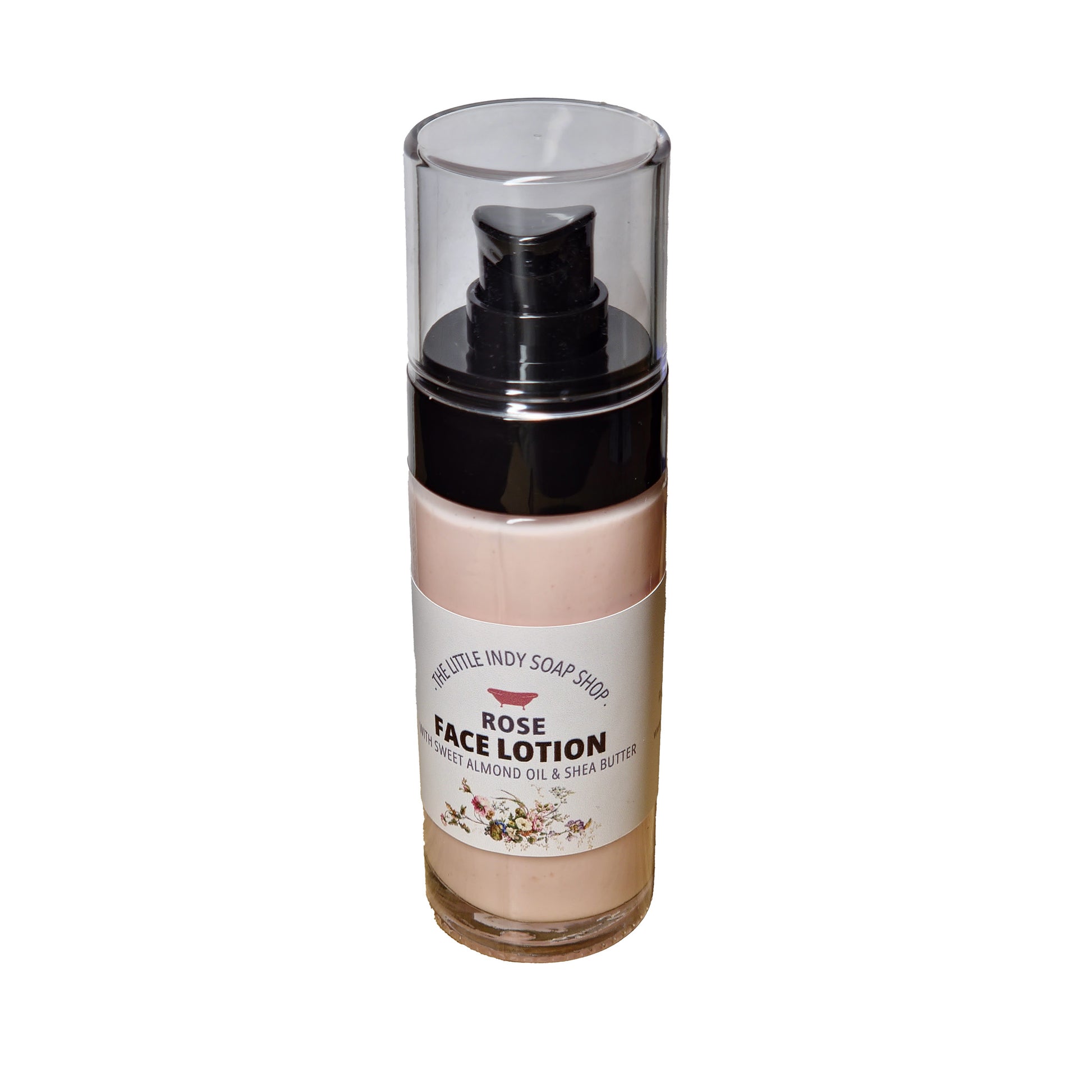 Our favourite Rose Face Balm in a pump bottle. Formulated to be a bit more liquid, with a lower % of oils and butters (20%). This lotion sinks into the skin very quick. On dryer skin one might need to add the Face Oil over the cream to create a proper moisture sealed in effect. Lotions are ideal for a day cream or younger skin that prefers a lighter skin diet.
